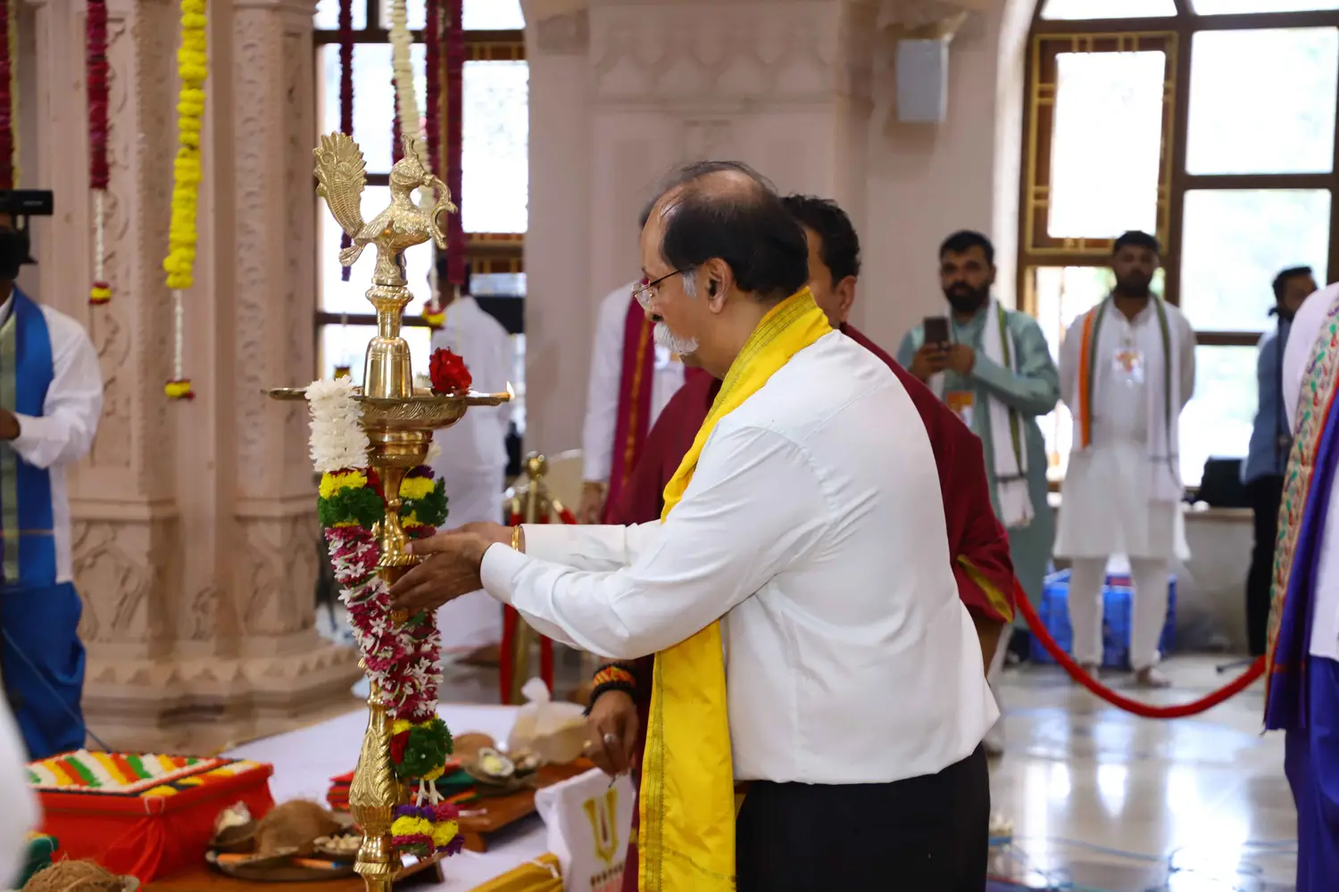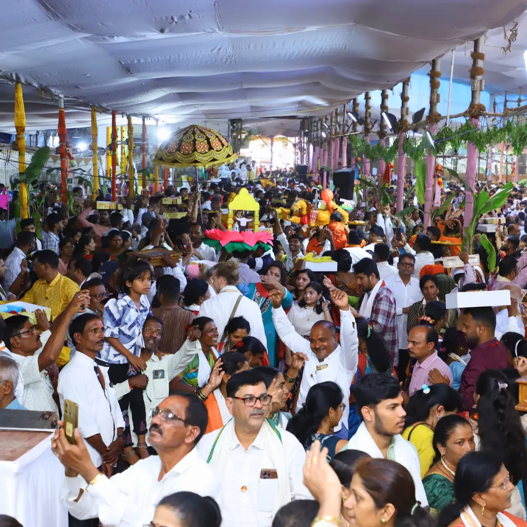 The Shree Vaibhavlakshmi Utsav is celebrated every year with deep devotion and joyous enthusiasm at Shree Kshetra Gurukul, Juinagar, on every Friday of the sacred month of Margashirsha. Participation in this holy Utsav is regarded as highly auspicious by devotees, and large numbers of Shraddhavans gather to receive the spiritual benefit of the ‘Homa’ (होम). During the Homa, Shraddhavans are blessed with the opportunity to participate in the Aavartanas (repetitions), which further enhances the serene, sacred, and spiritually charged atmosphere of the Utsav. The Shree Vaibhavlakshmi Utsav thus becomes a profoundly sacred experience of joy, contentment, and devotional inspiration for all present. This time, the Vaibhavlakshmi Utsav was observed on 21st and 28th November 2025.