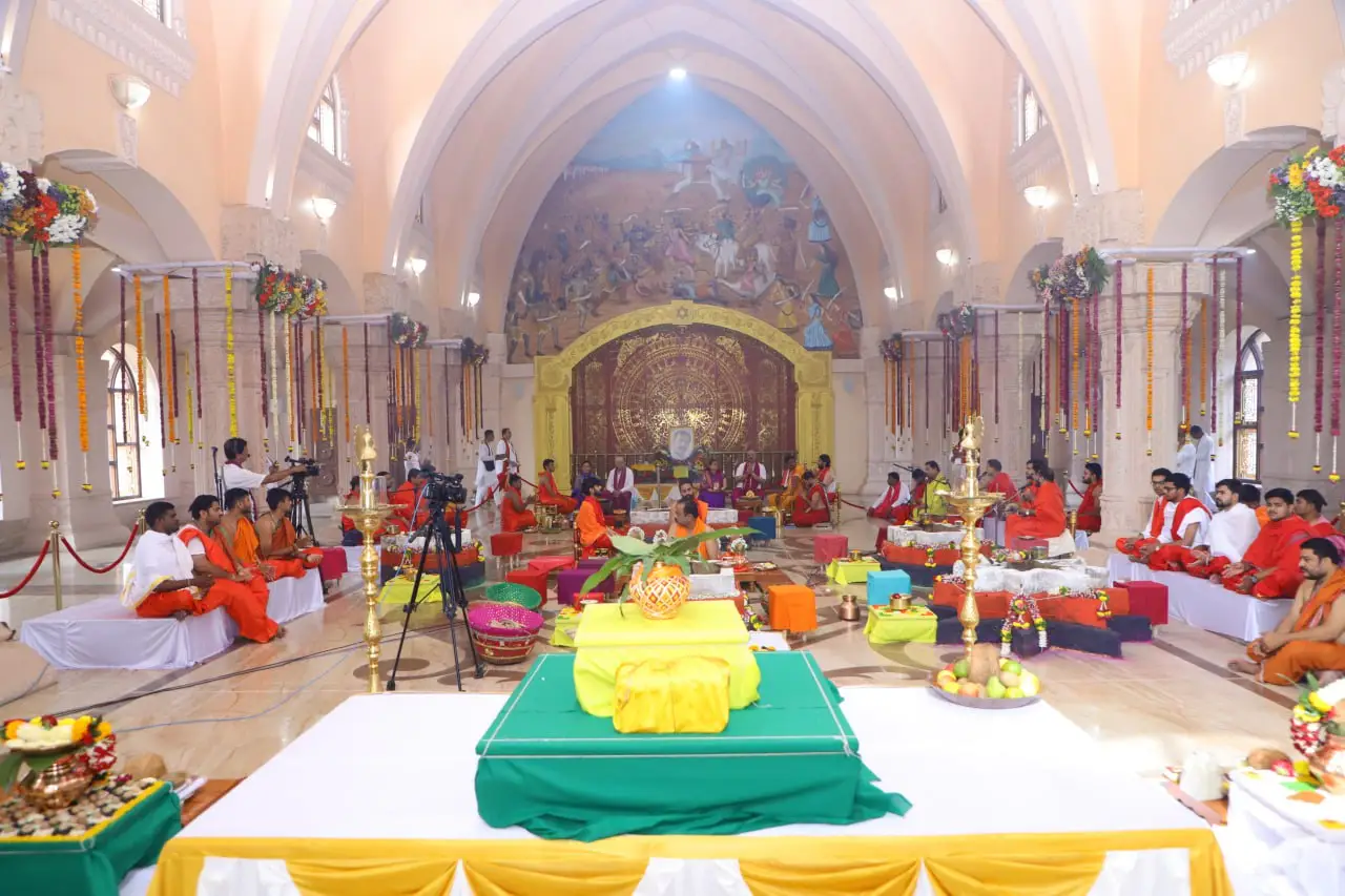 The Kshetrashuddhi–Kshetrapooja rituals, forming part of the “Purvarang” segment of the Shree Aniruddha Dham Prathisthapana Sohala, commenced on Tuesday, 28th October 2025, and concluded on Wednesday, 5th November 2025 — the auspicious occasion of Kartik Pournima (Aniruddha Pournima) — with complete Vedic procedures. Shraddhavans experienced the sanctity and grandeur of this auspicious event through the live streaming of the ceremony. Witnessing the tremendous enthusiasm and joy surrounding this sacred occasion, Sadguru Shree Aniruddha opened the ceremony to all Shraddhavans from 29th October 2025. From then on, Shraddhavans participated in the ceremony with heartfelt love, devotion, and discipline. Following the overwhelming response to the Shree Aniruddha Dham Prathisthapana Sohala, a joyous announcement awaited everyone at the conclusion of the event. By the boundless grace of Sadguru Shree Aniruddha Bapu, the doors of Shree Purushartha Aniruddha Dham were opened to all Shraddhavans for Darshan from that very day onward.