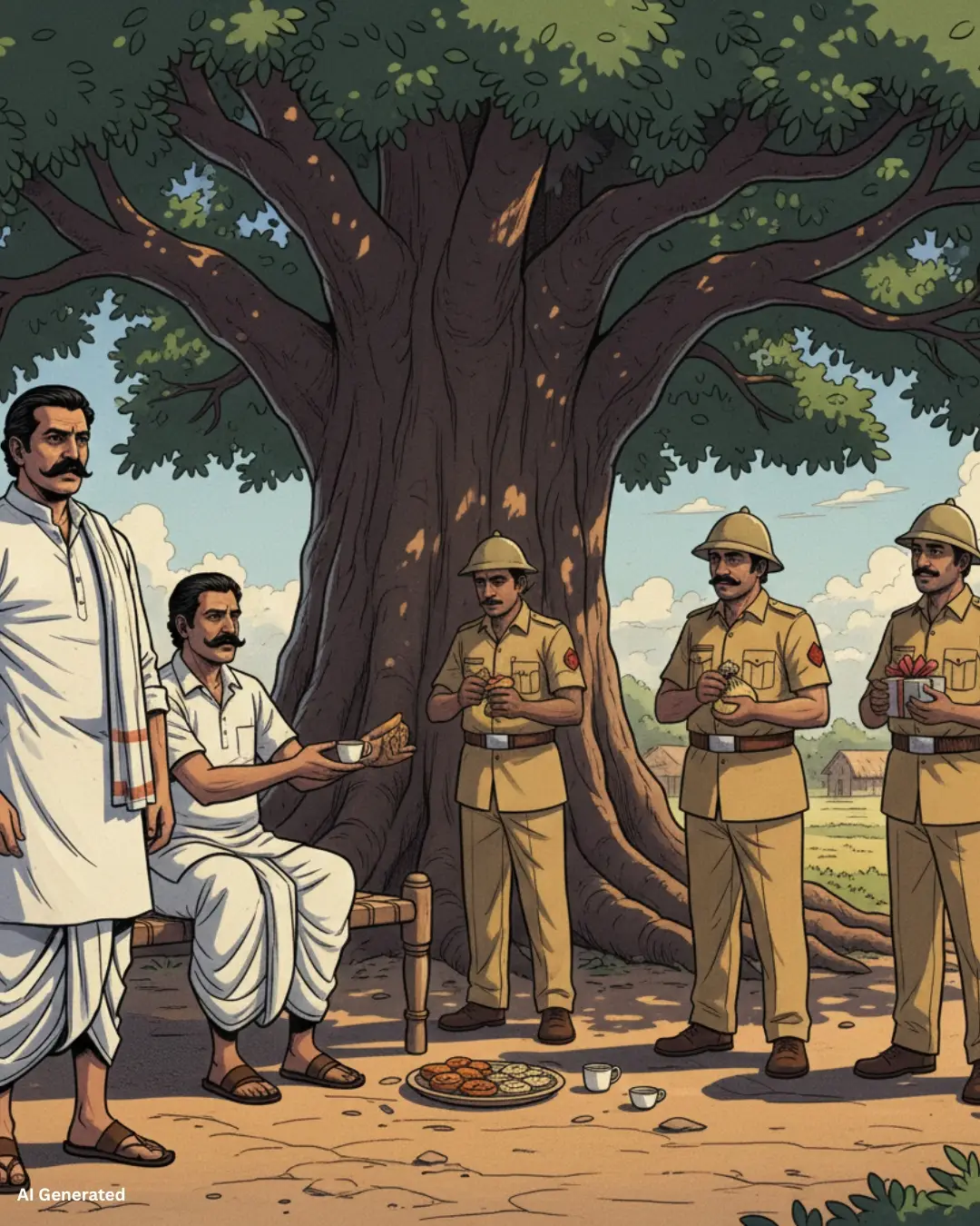 Ramchandra, along with two other British officers, had been searching for revolutionaries for the past two days under the pretext of inspecting the forests in that region. Naturally, Ramchandra would first contact his father before conducting any raids, and so the revolutionaries in hiding would be shifted to safer places well in advance. Earlier today, a major raid had been carried out in a neighbouring village because the two British colleagues themselves had claimed to have received a tip-off. In truth, the very plan to leak that information had been set in motion by Ramchandra’s men—who were, in fact, Malharrao’s men.