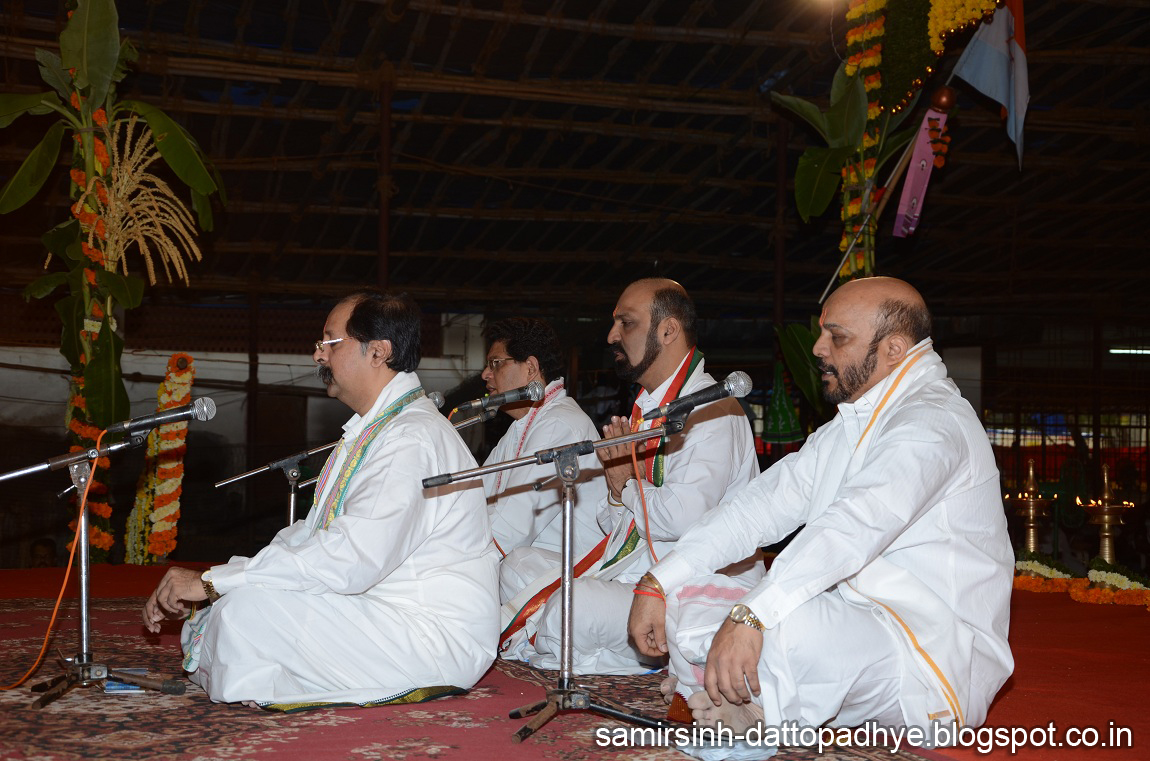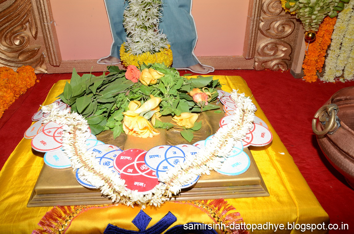 Shree Aniruddha Chalisa Pathan began in a very pious atmosphere at Shree Harigurugram. The Padchinnh and idol of Bapu arrived at 9:15 AM. After this the ceremony started with chanting of Anhik, Shree Aadimata Shubhankara Stavanam and 9 Vachane of Sadguru Bapu.